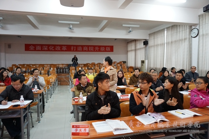 經(jīng)各系部選拔推薦,本次決賽共有14名教師參加。為了維護(hù)比賽的公平、公正,比賽組委會(huì)聘請(qǐng)了廣西交通職業(yè)技術(shù)學(xué)院彭朝暉教授、廣西教育學(xué)院伍梅教授、廣西機(jī)電職業(yè)技術(shù)學(xué)院韋傳亮教授、廣西幼兒高等師范??茖W(xué)校吳嚴(yán)教授、廣西電力職業(yè)技術(shù)學(xué)院黎天業(yè)教授擔(dān)任決賽評(píng)委。