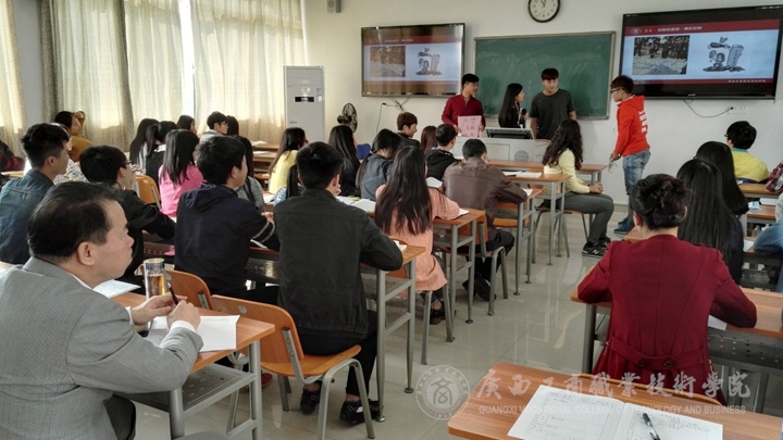 周鵬程老師首先從中國廣場舞大媽的身影,深圳山體滑坡兩個事件導入課程,逐步講述了控制的含義,控制的類型,控制的方法等幾個方面的知識。周老師講課旁征博引,使用許多生動的圖片,引用了古典寓言故事,又結(jié)合當今發(fā)生在同學們身邊的事件和新聞故事,講課條理清晰,講解準確,整堂課深入淺出,風趣幽默,呈現(xiàn)出周老師良好的師范素質(zhì)。周老師還邀請幾位同學現(xiàn)場表演了一個不要亂扔垃圾的小短劇,讓同學們更好地理解了控制的含義和作用,也讓現(xiàn)場聽課的領導、老師們感受到了這堂課有趣的氛圍。課后,項目組成員還與聽課的領導、老師們對該堂課進行了深入的研討。