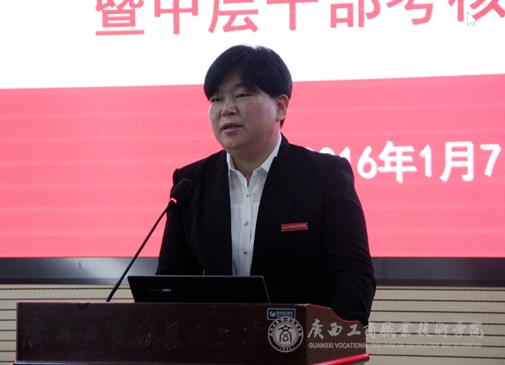 會議首先由覃武云書記發(fā)表講話,接下來進行2015年度部門黨建、行政工作總結,學院各機構主要負責人分別上臺總結了本部門2015年度的工作概況、工作亮點、工作成績以及2016年的工作設想,同時對履行黨建工作責任和黨風廉政建設責任情況進行述職,時長為5-8分鐘。