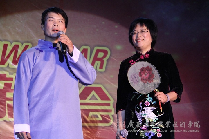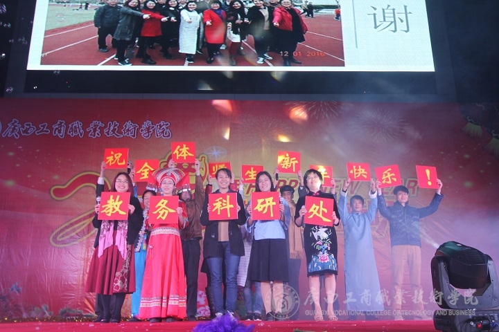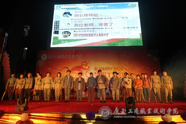 現(xiàn)場(chǎng)華燈璀璨,熱鬧非凡。晚會(huì)伊始,主持人向大家介紹了到場(chǎng)的學(xué)院領(lǐng)導(dǎo)、嘉賓及教師等,接著由黨委書(shū)記覃武云做新年賀辭,他代表學(xué)院黨委向全體師生致以誠(chéng)摯的問(wèn)候和新年美好祝福。