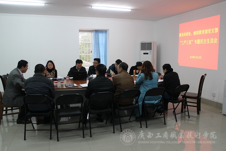 根據(jù)上級(jí)及學(xué)院黨委安排,2016年1月13日下午,教務(wù)科研處黨支部和繼續(xù)教育黨支部在認(rèn)真開展會(huì)前學(xué)習(xí),撰寫發(fā)言提綱的基礎(chǔ)上聯(lián)合召開了“三嚴(yán)三實(shí)”專題民主生活會(huì)。會(huì)議由教務(wù)科研處副處長闕勇平教授主持,學(xué)院李維副院長參加了會(huì)議。教務(wù)科研處黨支部和繼續(xù)教育黨支部除下鄉(xiāng)和請(qǐng)假人員外,共13名黨員參加了民主生活會(huì)。