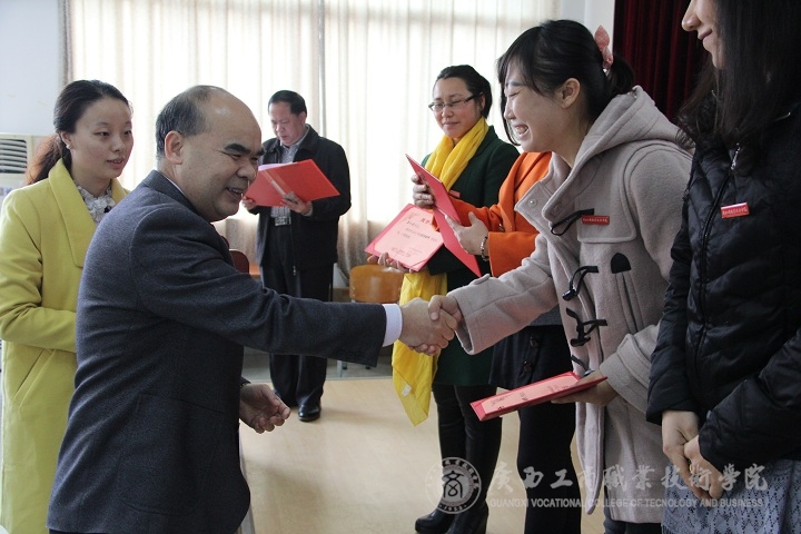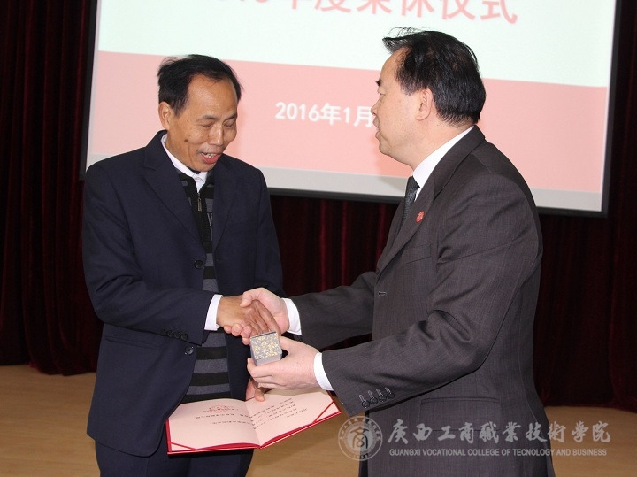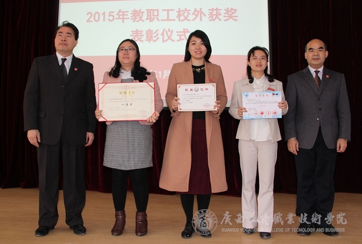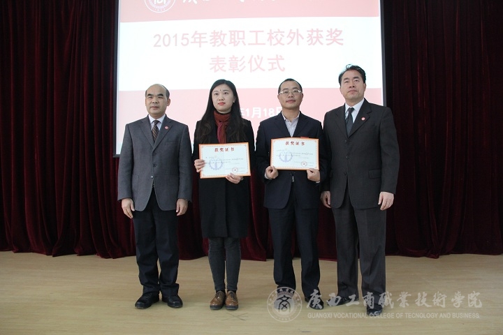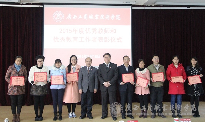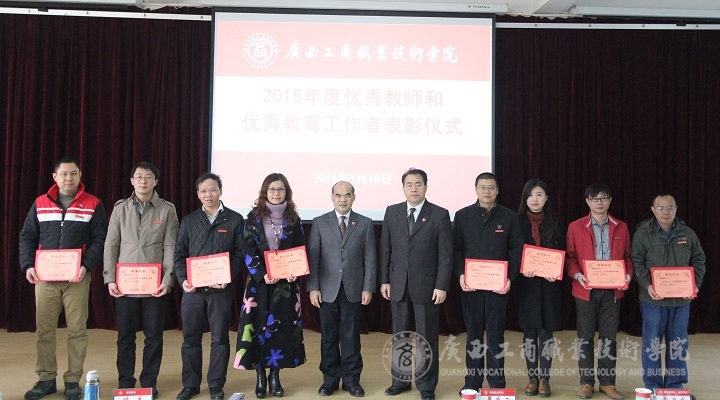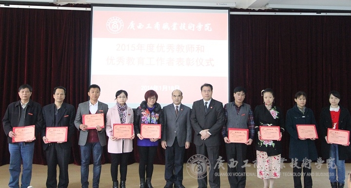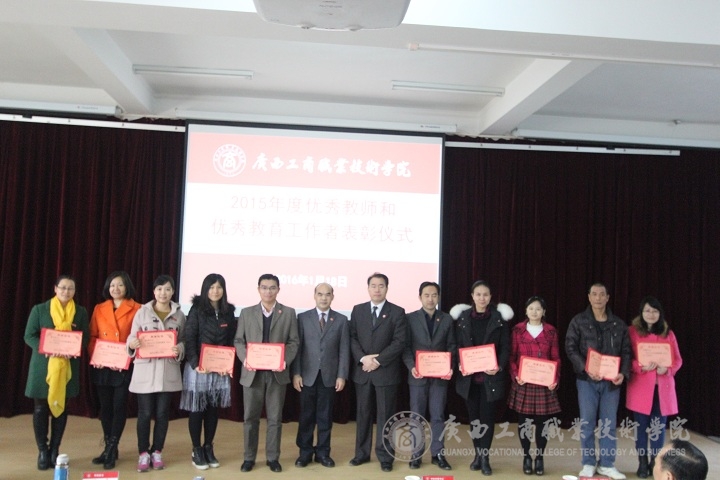 隨后,由學(xué)院副院長李仕欽作2015年度優(yōu)秀教師及工作者表彰決定報告。學(xué)院黨委書記覃武云和學(xué)院院長為受表彰的教師及教育工作者頒發(fā)證書。