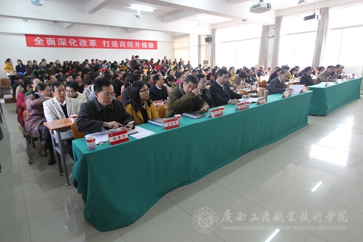 會上,由陳杰院長就學(xué)院建立實施校外獲獎備忘錄制度做政策說明,并作2015年度工作報告。陳杰院長在報告中選取八件大事對2015年學(xué)院各項工作進行了總結(jié)。一、從作風(fēng)、組織、措施3個方面總結(jié)了2015年“黨的建設(shè)”;二、教學(xué)水平升級,主要是人才、培養(yǎng)模式、繼教方面的升級;三、管理能力升級,從依法治校、隊伍建設(shè)、數(shù)字化校園等方面進行論述;四、服務(wù)環(huán)境升級,從規(guī)范、隊伍、條件三個方面小結(jié)了2015年“三個升級”。五、校園文化的特色文化和系列活動;六、學(xué)生管理;七、招生就業(yè);八、民生建設(shè)。他還講解了寒假工作安排及2016年工作思路。強調(diào)了要強化校外參賽獲獎意識;強化政策方向;加強團隊意識等重點內(nèi)容。