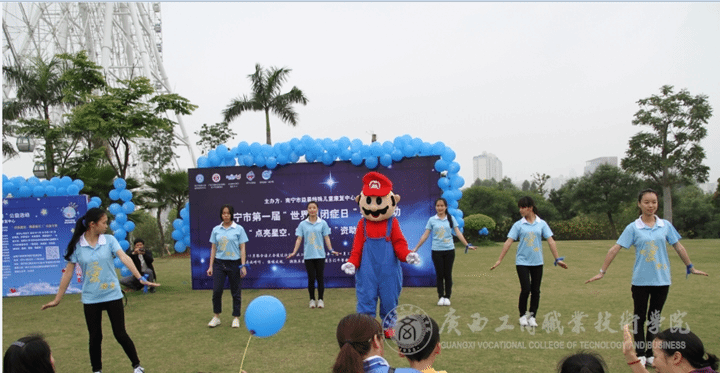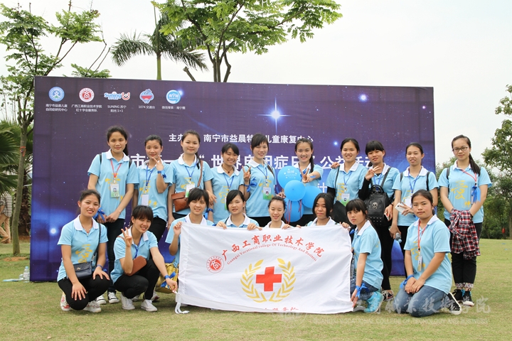 2015年3月29日,由南寧市益晨特殊兒童康復(fù)中心主辦南寧市民政局與南寧市殘疾人聯(lián)合會承辦的“點亮星空,攜手前行!”公益計劃——南寧市第一屆“世界自閉癥日”公益活動在南寧市鳳嶺兒童樂園舉行,我院紅十字會服務(wù)隊作為協(xié)辦方參加了本次活動。