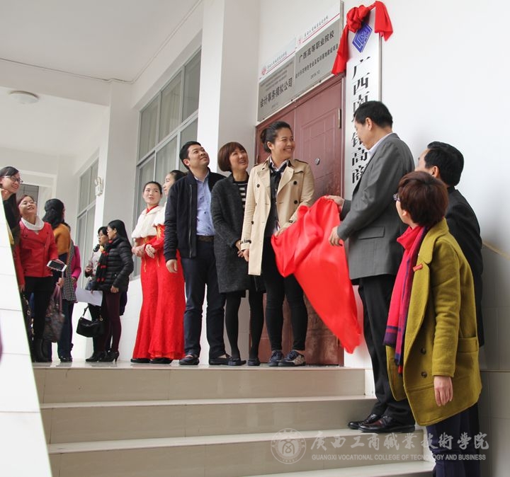 隨后與會人員移步到了328實訓室,企業(yè)代表廣西南寧銘高商務有限公司總經理黃淇和學院代表李維副院長進行揭牌,廣西南寧銘高商務有限公司正式在學院落戶,校企合作揭牌儀式在熱烈掌聲中落下帷幕!