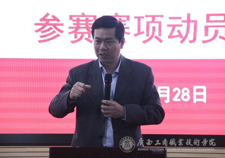 3月28日下午4時(shí)30分,我院在校本部教學(xué)樓2119會(huì)議室召開(kāi)2016年廣西職業(yè)院校技能大賽參賽賽項(xiàng)動(dòng)員會(huì)。學(xué)院李維副院長(zhǎng)、教務(wù)科研處、會(huì)計(jì)系、經(jīng)管系、財(cái)信系、公共基礎(chǔ)部等相關(guān)部門(mén)領(lǐng)導(dǎo)、各技能大賽項(xiàng)目參賽隊(duì)指導(dǎo)教師和參賽學(xué)生參加了本次會(huì)議,會(huì)議由教務(wù)科研處處長(zhǎng)韋勝?gòu)?qiáng)主持。