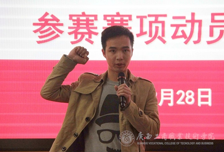 隨后,學(xué)生代表陸宏天上臺(tái)發(fā)言表態(tài),他表明參賽隊(duì)一定會(huì)以嚴(yán)肅的態(tài)度,勇于拼搏的精神,嚴(yán)謹(jǐn)求實(shí)的作風(fēng)參加比賽,在參賽過(guò)程中嚴(yán)格遵守比賽規(guī)則,自覺(jué)服從組織的安排,以操作技能為目標(biāo),為學(xué)院爭(zhēng)光。