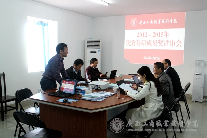 根據(jù)學院有關(guān)文件精神,我校2012-2015年科研成果獎專家評審會于2016年3月25日在校本部學術(shù)交流中心召開。本次專家評審會共邀請五位校外專家教授組成評審小組,其中,廣西交通職業(yè)技術(shù)學院彭朝暉教授任組長,成員有廣西幼兒師范高等??茖W校吳嚴教授、廣西電力職業(yè)技術(shù)學院譚永平教授、廣西建設(shè)職業(yè)技術(shù)學院孫義剛高級工程師和廣西機電職業(yè)技術(shù)學院刁愛華教授。