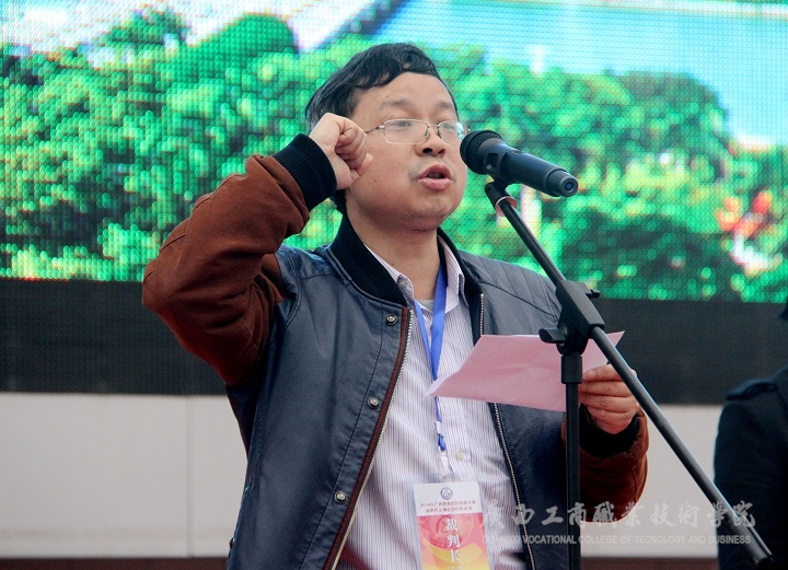 啟動(dòng)儀式由我院教務(wù)科研處韋勝強(qiáng)處長(zhǎng)主持,他向大家介紹出席本次儀式的領(lǐng)導(dǎo)及嘉賓。接著,學(xué)院李維副院長(zhǎng)在臺(tái)上致辭,他代表學(xué)院對(duì)各兄弟院校的參賽隊(duì)伍、全體裁判員的到來表示熱烈的歡迎。相信各參賽隊(duì)在比賽中賽出風(fēng)格、增進(jìn)友誼,通過比賽推動(dòng)各職業(yè)院校進(jìn)一步深化教改,不斷提高學(xué)生專業(yè)技能水平和技術(shù)應(yīng)用能力,促進(jìn)我區(qū)各高職院校市場(chǎng)營(yíng)銷及相關(guān)專業(yè)的蓬勃發(fā)展,提高人才培養(yǎng)工作質(zhì)量。他表示,秉承主辦方組委會(huì)給予我院作為比賽點(diǎn)的機(jī)會(huì),我院認(rèn)真做好比賽各項(xiàng)服務(wù)工作,維護(hù)良好的比賽秩序,保證比賽順利進(jìn)行。