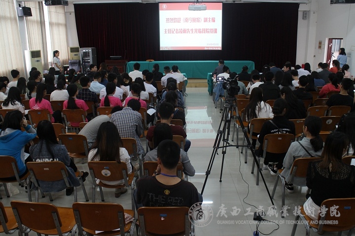 2016年4月22日下午15:00,我院“新聞人”集聚校本部2145報(bào)告廳,特邀《南寧晚報(bào)》副總編凌雨展開了“我做新聞人”新聞宣傳報(bào)道工作人員崗位能力系列講座的第一課。學(xué)院黨委副書記、紀(jì)委書記蒙啟成、學(xué)院各部門分管宣傳的領(lǐng)導(dǎo)和宣傳員、黨委宣傳部新聞中心以及學(xué)院各個(gè)學(xué)生組織的宣傳代表在現(xiàn)場(chǎng)共同享受了這場(chǎng)新聞盛宴。