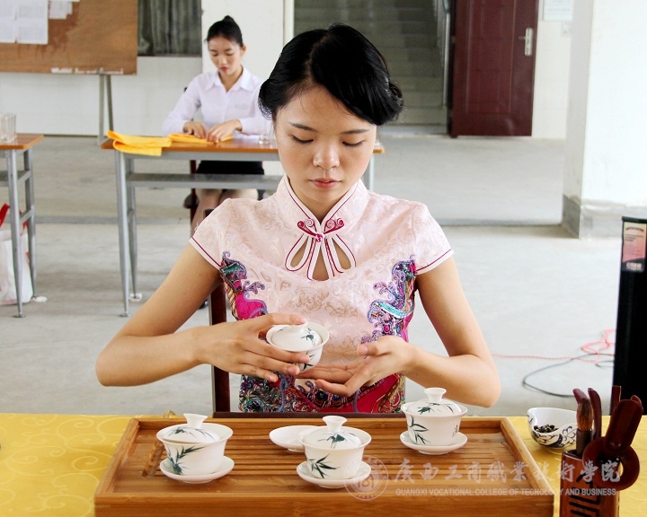? ? ? ? 現(xiàn)場(chǎng)采訪中,此次技能展演的指導(dǎo)老師介紹了中西餐的宴會(huì)設(shè)計(jì)、服務(wù)技能展演、調(diào)酒區(qū)的知識(shí)以及源遠(yuǎn)流長(zhǎng)的茶藝文化、還有折花技能。她表示,此次技能展演中是對(duì)14級(jí)酒店管理專(zhuān)業(yè)同學(xué)知識(shí)技能的檢驗(yàn),也可以看到15級(jí)酒店管理專(zhuān)業(yè)同學(xué)們參與志愿者工作的積極性,彰顯了酒店專(zhuān)業(yè)的團(tuán)結(jié)。希望通過(guò)技能展演讓更多人認(rèn)識(shí)酒店專(zhuān)業(yè)、傳播餐飲文化。老師還對(duì)同學(xué)們寄予了深深地期許,她說(shuō):希望同學(xué)們繼續(xù)發(fā)揚(yáng)堅(jiān)忍不拔的精神把每一件事情都做好。