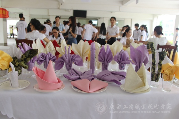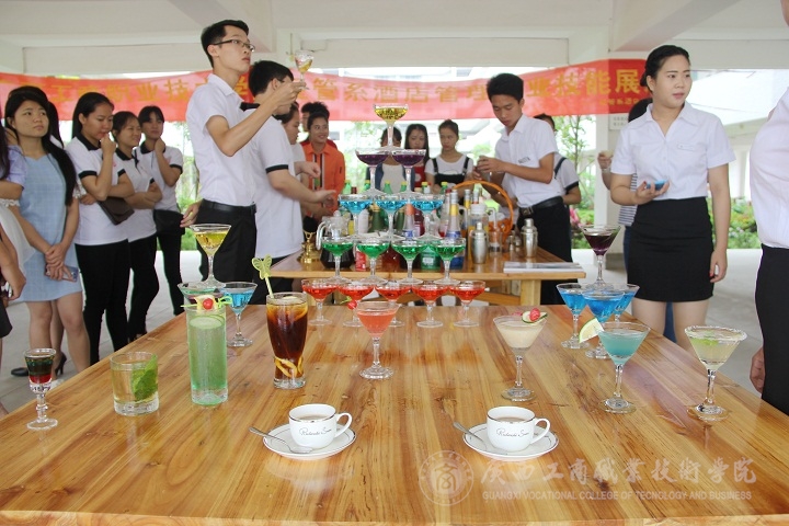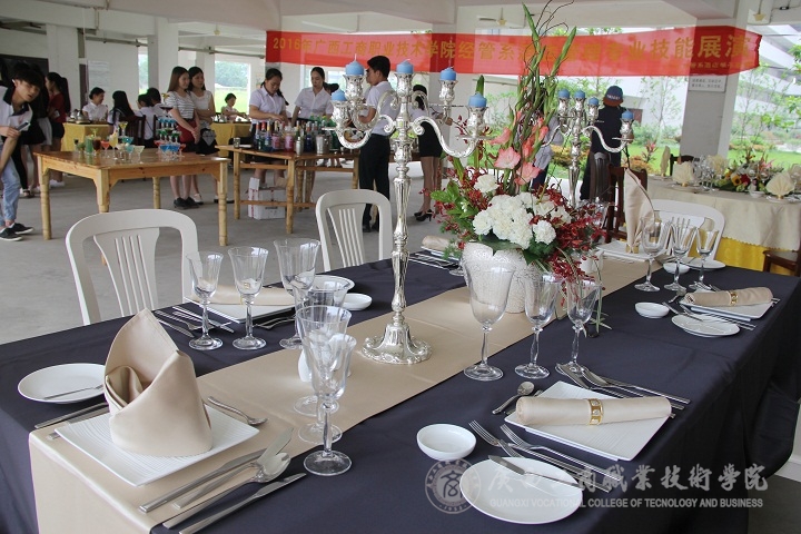 ? ? ? ? 2015年5月14日上午,我院經(jīng)管系酒店管理專(zhuān)業(yè)在校本部教學(xué)樓架空層舉辦了以“經(jīng)管系酒店管理專(zhuān)業(yè)技能展演”為主題的中西餐文化展,本次展演以中餐主題宴會(huì)設(shè)計(jì)、西餐宴會(huì)服務(wù)為主,調(diào)酒、茶藝、折花為輔。