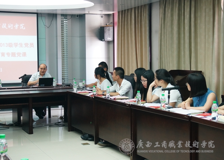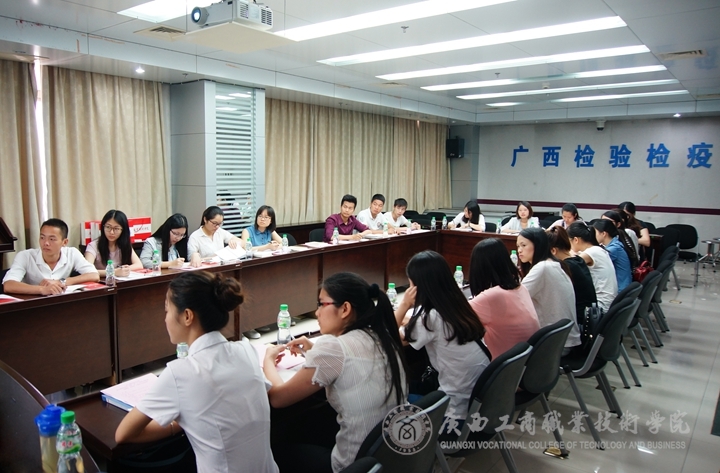 2016年5月7日,學(xué)院黨委書記覃武云同志率黨委組織部、黨委學(xué)工部、各系黨總支領(lǐng)導(dǎo)及黨務(wù)工作者一行7人前往廣西出入境檢驗檢疫局技術(shù)中心,與我院在該單位及其他在南寧市預(yù)就業(yè)的2013級學(xué)生黨員開展“兩學(xué)一做”學(xué)習(xí)教育專題黨課學(xué)習(xí),并進行“講政治、有信念”專題學(xué)習(xí)討論。