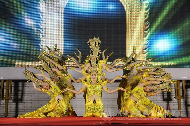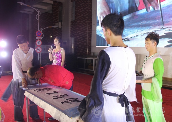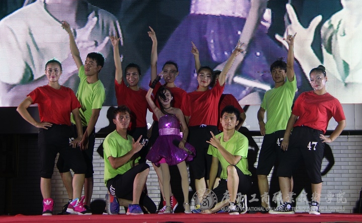 在主持人的介紹下,開始了各具特色的精彩演出,舞蹈、演唱、樂器、口書、模仿秀、千手觀音這些表演無不牽動(dòng)著廣商院師生的心。游韌有余的演奏樂器嗩吶和演唱的勵(lì)志歌曲《我的未來不是夢(mèng)》讓振奮人心,精彩默契的雙人舞《鷹》,熱情的獨(dú)唱《我相信》和兄弟合唱《朋友》,柔美婉約的舞蹈《風(fēng)沙》,鏗鏘熱情的獨(dú)唱《載歌載舞》和歌舞演繹《荷塘月色》,極具高難度的藝術(shù)表演口書為廣商院獻(xiàn)出題字“精工智商”校訓(xùn),還有廣商院各系代表為藝術(shù)團(tuán)捐款環(huán)節(jié),更有盲人催人淚下的演唱《好人就在身邊》,聾啞人帶來曼妙多姿的舞蹈《魚》,還有大叔帶來熱情高漲的潮流舞蹈《江南style》,可愛的袖珍姑娘——甜甜為我們演唱了《隱形的翅膀》和《小蘋果》?,F(xiàn)場觀眾感受到她帶給大家的熱情,將晚會(huì)的氣氛逐漸推到高潮!一重又一重驚喜的模仿秀惹得臺(tái)下笑聲一片以及給觀眾帶來激情澎湃的歌曲《怒放的生命》,讓人看完真是久久不能忘懷。