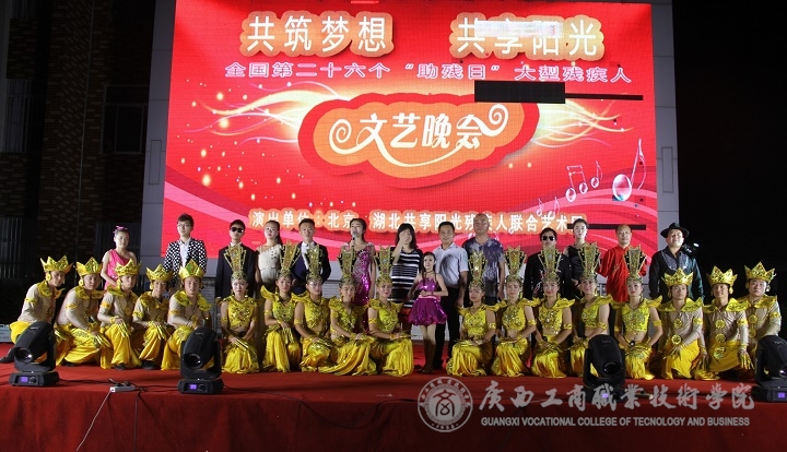 2016年5月19日晚19:40“殘聯(lián)文藝匯演”在校本部LED大屏幕下隆重舉行。本次殘藝晚會(huì)由北京、湖北共享陽光殘疾人聯(lián)合藝術(shù)團(tuán)為我們帶來多元化的文藝匯演。本次匯演共有十三個(gè)節(jié)目,每一個(gè)節(jié)目都是由殘疾人獻(xiàn)給我們的精彩演出。此次匯演極具意義的晚會(huì),廣商院的師生們都積極活躍的參與其中,現(xiàn)場氣氛十分火熱。