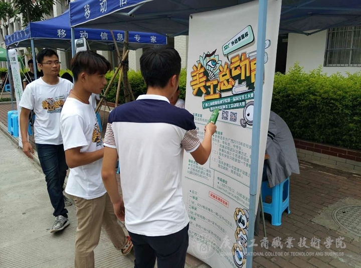 廣西財(cái)經(jīng)學(xué)院的宣傳工作在宿舍前的小廣場(chǎng)進(jìn)行,受到該校同學(xué)們的廣泛關(guān)注,他們表示對(duì)本次活動(dòng)很感興趣,很多同學(xué)都紛紛來(lái)到報(bào)名攤點(diǎn)前詢問(wèn)比賽的報(bào)名方式以及比賽內(nèi)容。