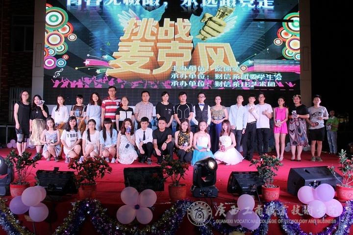 歌聲嘹亮,音符飄揚。2016年6月2日晚19:00,我院團委主辦、財信系團委學(xué)生會承辦的“青春無極限 永遠跟黨走”之挑戰(zhàn)麥克風(fēng)比賽決賽在我院校本部LED大屏幕下隆重開唱。學(xué)院黨委學(xué)生工作處副部長張居設(shè)、學(xué)院團委書記廖顯圖、財信系主任林芳等相關(guān)部門負責(zé)人觀看了本次比賽,我院馬力老師、楊柳老師、陶艷蘭老師、陳宇寧老師、陶曉斌老師擔任本次比賽的評委。