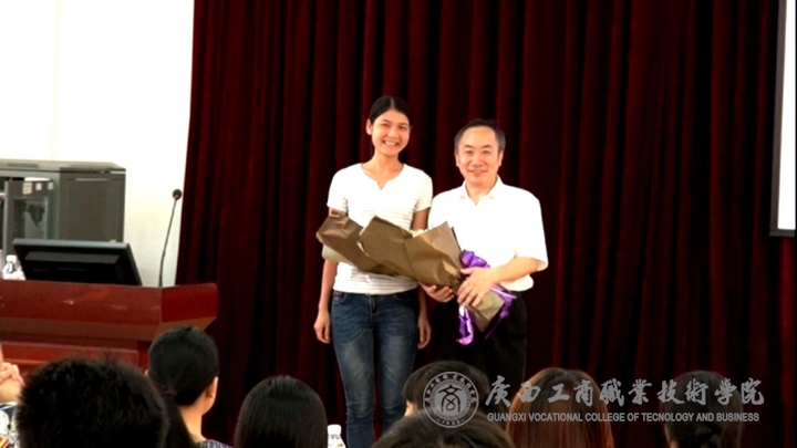 龔教授的講座充滿激情,語言幽默,生動活潑,深入淺出,充分展示了大師的風(fēng)范。師生們從中了解了廣西在民族學(xué)研究領(lǐng)域的發(fā)展情況,領(lǐng)悟了“成功”與“付出”的正比關(guān)系?!八颊除垺钡娜煌瑢W(xué)還與龔教授進(jìn)行了積極的互動。同學(xué)們?yōu)辇徑淌讷I(xiàn)上了鮮花和“商院風(fēng)”文化扇,表達(dá)了師生們對龔教授的尊敬和喜愛。