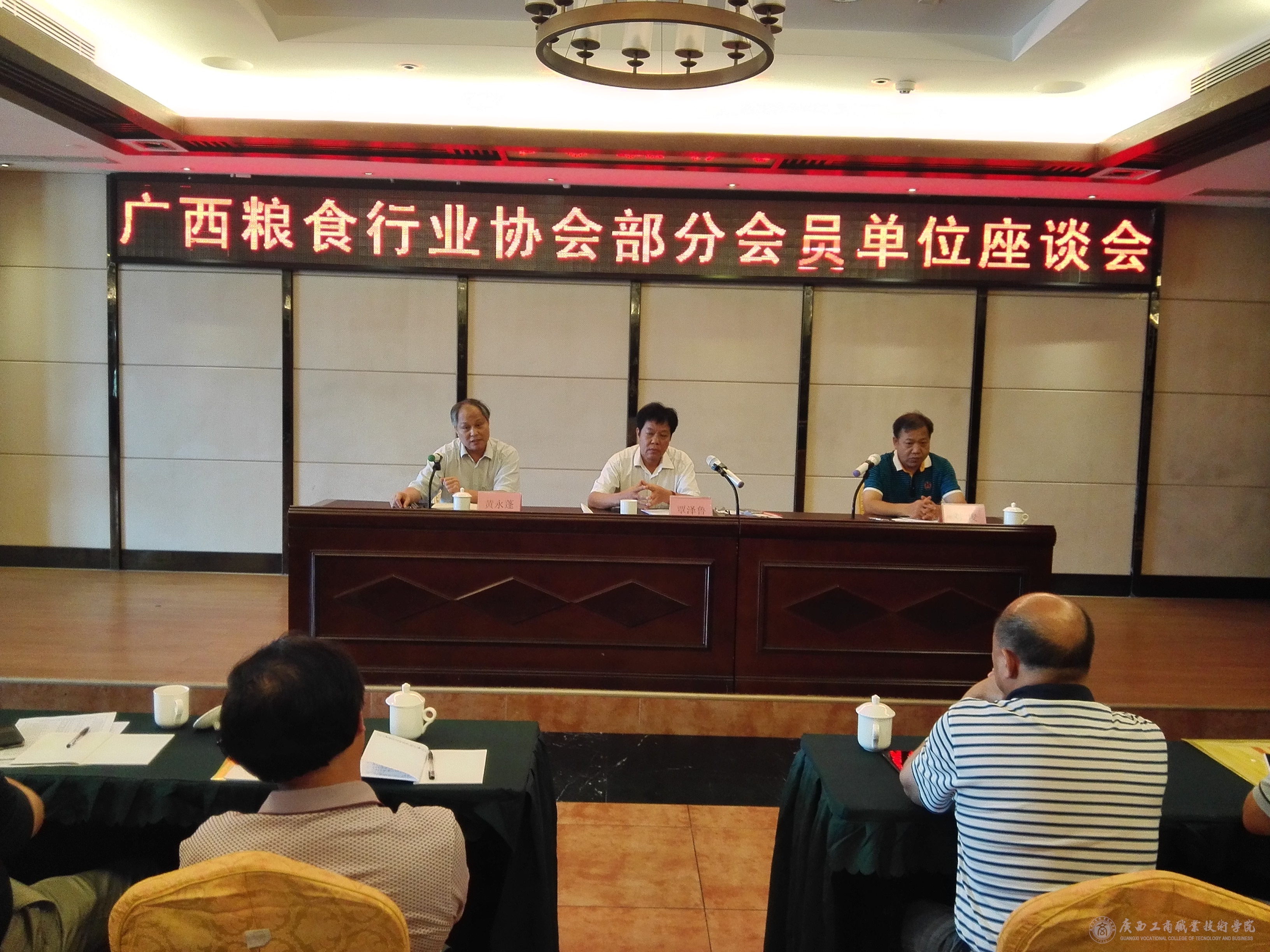 2016年6月2日,廣西糧食行業(yè)協(xié)會組織召開了部分會員單位座談會,自治區(qū)糧食局吳宇雄局長,我院副廳級調研員黃永蓬受邀參加座談。會上,自治區(qū)糧食局吳宇雄局長就穩(wěn)定我區(qū)糧食自給、保障糧食購進、糧食合理儲備等問題進行了深入的剖析與解讀。我院副廳級調研員黃永蓬簡要介紹了學院涉糧專業(yè)人才培養(yǎng)創(chuàng)新模式與成果,并與參會代表們深入探討了如何進一步加強校企合作、校校合作、多方聯(lián)動,做好糧食行業(yè)人才培養(yǎng)與輸送工作,為廣西糧食行業(yè)與事業(yè)發(fā)展貢獻學院的力量。