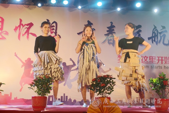 此次晚會節(jié)目形式多樣、風格各異,有歌曲演唱、舞蹈、T臺秀、小品、情景劇等表演形式。晚會以一支《wroth it》舞蹈開場,晚會中妙音樂團演唱及樂器伴奏的《月半小夜曲》,引來臺下掌聲雷動。房會1505班帶來的小品《都是QQ惹的禍》,詼諧搞笑的動作,幽默風趣的語言惹得臺下觀眾捧腹大笑。會審1435班用報紙、絲巾改造的服裝給我們帶來的《環(huán)保時裝秀》讓大家大為驚嘆,還有團委學生會帶來的《青花瓷》舞蹈和情景劇《鵬飛路十五號的故事》,節(jié)目的精美編排和同學們的精湛的演技讓觀眾贊嘆不絕。