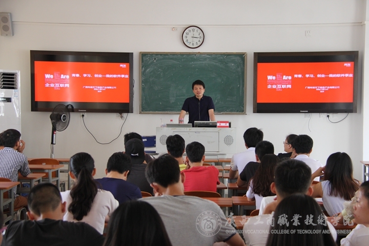 袁開學(xué)長在大一期間自考本科,大專畢業(yè)后在廣西大學(xué)就讀工商企業(yè)管理專業(yè)。大學(xué)本科畢業(yè)后用了6年時間創(chuàng)辦了廣西步道天下信息有限公司,出任公司CEO。袁開學(xué)長以勤奮學(xué)習(xí)為本為主題展開了專題講座,在講座中他強調(diào),確定了方向,就應(yīng)該集中精力起加強專業(yè)的學(xué)習(xí)。他分享到自己以前的經(jīng)歷,在上課的時候都很喜歡坐在第一排,上課前都很喜歡喝老師互動,喜歡多跟老師進行接觸和交流,以便了解當(dāng)今時代的就業(yè)發(fā)展趨勢。
