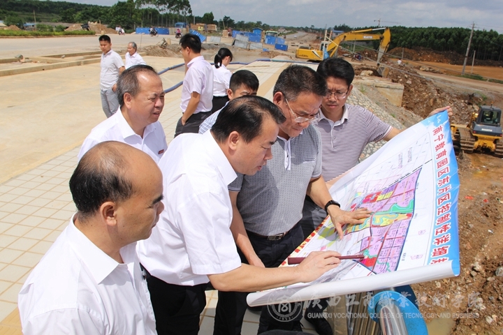 簽約儀式結(jié)束后,武鳴城區(qū)領(lǐng)導陸耀忠同志帶領(lǐng)廣商院簽約代表一行人實地觀看了廣商院初步確定的位于武鳴東片區(qū)的新校址。