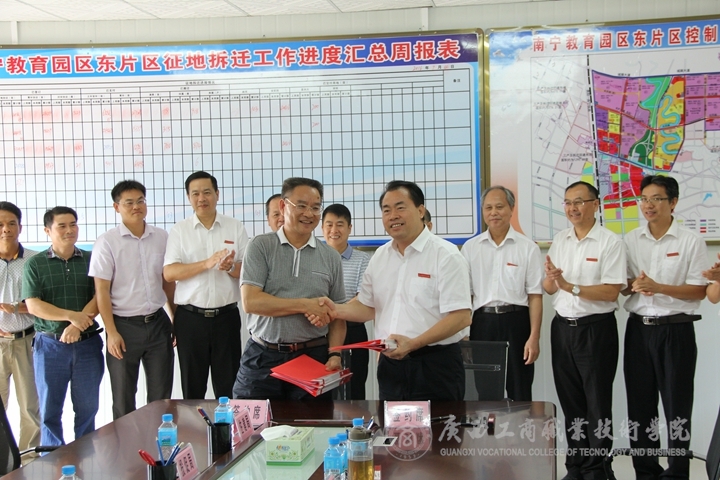 據(jù)悉,廣商院入住南寧教育園區(qū)建設(shè)項目前期工作進展順利。5月5日獲得自治區(qū)教育廳《南寧教育園區(qū)學校入院建議書》,6月23日,南寧教育園區(qū)東片區(qū)指揮部已確定我院新校區(qū)初步選址方案。經(jīng)學院與武鳴區(qū)人民政府商議,于2016年7月6日正式簽訂《入駐南寧教育園區(qū)武鳴東片區(qū)框架協(xié)議書》,至此,廣商院開啟了在武鳴新校區(qū)建校辦學的新時代。