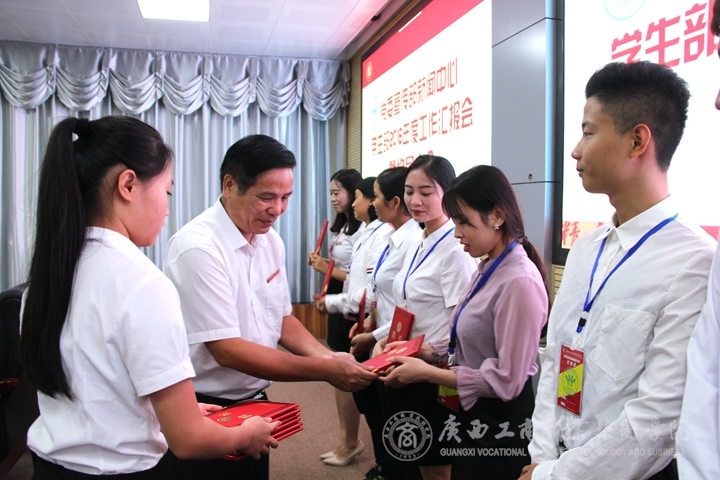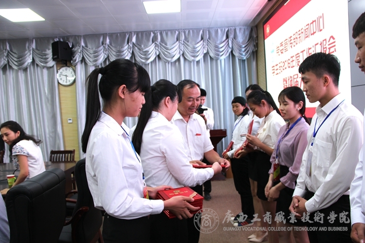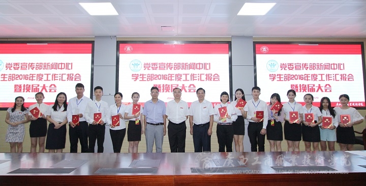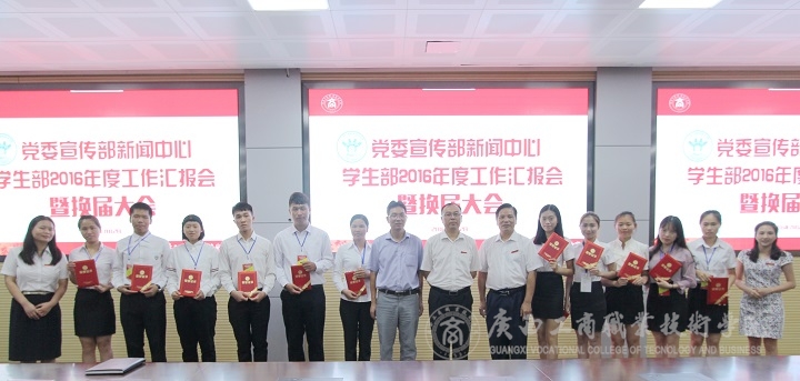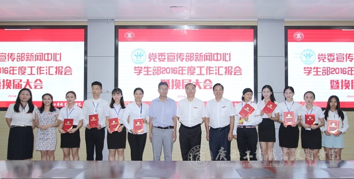 會(huì)議最后,由蒙啟成副書記為粟蘭惠、梁禮娜、李蓉榮等新聞中心獲得廣商院2015-2016年“優(yōu)秀記者”的同學(xué)頒發(fā)證書;韋勝?gòu)?qiáng)部長(zhǎng)和林雯副部長(zhǎng)分別為新聞中心獲得廣商院“新文化建設(shè)貢獻(xiàn)突出者”、“防艾微電影貢獻(xiàn)者”的同學(xué)頒發(fā)證書,韋勝?gòu)?qiáng)部長(zhǎng)還現(xiàn)場(chǎng)為新聞中心14級(jí)全體成員頒發(fā)了聘書。