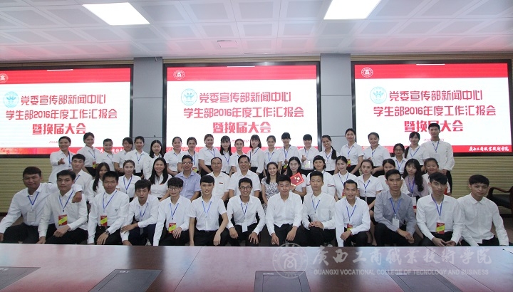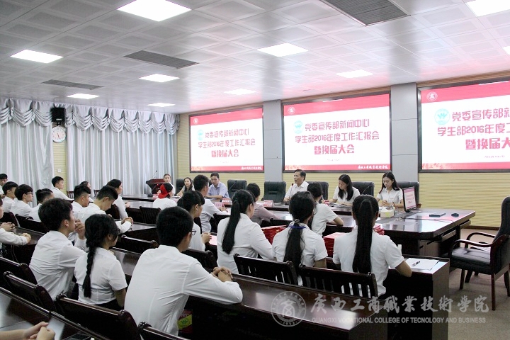 2016年7月12日下午五點(diǎn),我院在校本部2119視頻會(huì)議室舉辦“新聞中心學(xué)生部2016年度工作匯報(bào)會(huì)暨換屆大會(huì)?!睂W(xué)院黨委副書記蒙啟成、黨委宣傳部部長(zhǎng)韋勝?gòu)?qiáng)、現(xiàn)教中心主任、黨委宣傳部副部長(zhǎng)林雯、新聞中心指導(dǎo)老師、新聞中心學(xué)生部全體成員參加了本次大會(huì)。會(huì)議由新聞中心播主部宋珮瑤主持。