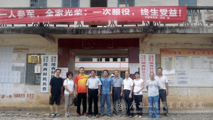 (辦公室黨支部黨員代表在靖西村與村委合影)