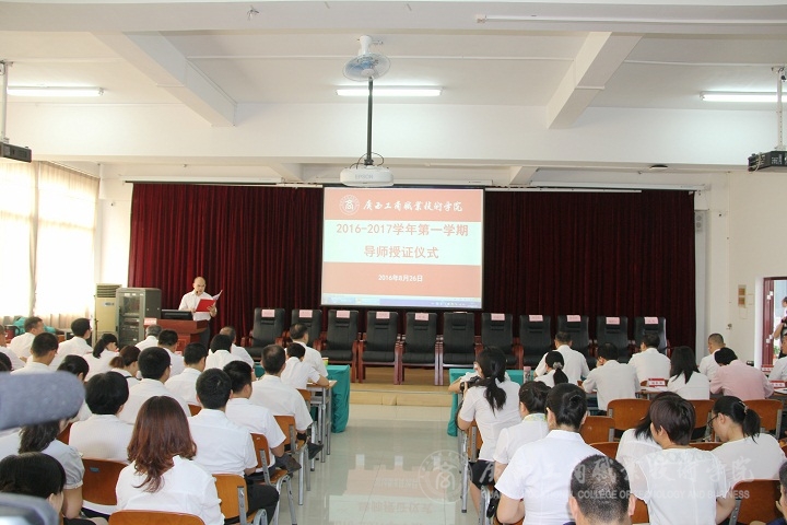 2016年8月26 日早上,我院于校本部2145報(bào)告廳舉行了2016年-2017年第一學(xué)期導(dǎo)師授證儀式。儀式由學(xué)院黨委書記覃武云主持,學(xué)院領(lǐng)導(dǎo)班子成員和全體教職工參加了該儀式。