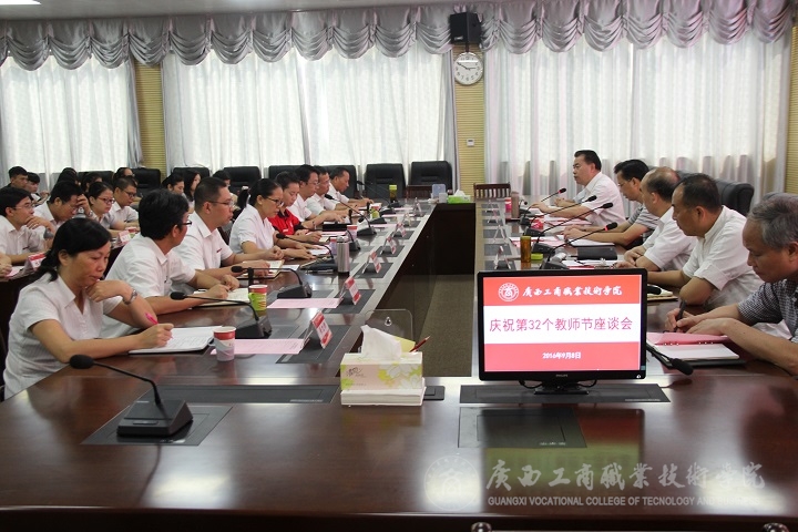 尊師重教是中國(guó)的優(yōu)良傳統(tǒng),早在公元前11世紀(jì)的西周時(shí)期就提出“弟子事師,敬同于父”。2016年9月8日下午2:40,我院在校本部教學(xué)樓2119會(huì)議室召開(kāi)“甘守三尺講臺(tái),爭(zhēng)做‘四有’教師”——慶祝第32個(gè)教師節(jié)座談會(huì)。自治區(qū)糧食局副巡視員、人事處處長(zhǎng)韋尚英、學(xué)院黨委書(shū)記覃武云、學(xué)院院長(zhǎng)、黨委副書(shū)記陳杰及其他學(xué)院領(lǐng)導(dǎo)、各部門(mén)、各單位代表、教師代表以及各系優(yōu)秀學(xué)生歡聚一堂,共同慶祝教師節(jié)。會(huì)議由學(xué)院黨委覃武云書(shū)記主持。