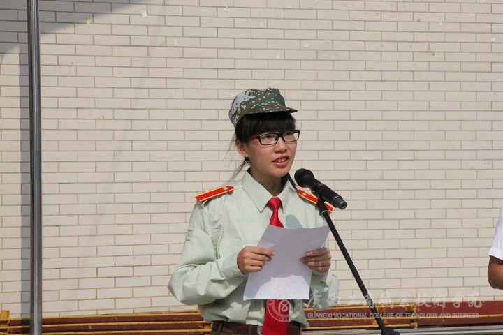 會上,主持人廖顯圖副部長介紹了參加動員大會的領(lǐng)導(dǎo),隨后由2016級學(xué)生代表稅會1601班譚志云同學(xué)進(jìn)行發(fā)言,代表即將參加軍訓(xùn)的新生們進(jìn)行表態(tài)。緊接著武警廣西總隊(duì)直屬支隊(duì)楊友元股長做了鼓舞人心、熱情洋溢的動員發(fā)言;最后,學(xué)院黨委副書記、紀(jì)委書記蒙啟成同志做了重要的講話,祝福本次軍訓(xùn)活動取得圓滿成功; 自此,為期十天的我院2016級新生軍事課教學(xué)訓(xùn)練在國旗下拉開了帷幕。
