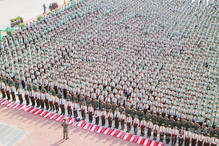 (龐大的新生軍訓(xùn)隊(duì)伍)