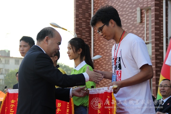 陽光明媚,秋高氣爽。廣商院師生懷著激動的心情,以整齊有序的隊伍站立在運動場上。擔(dān)任本次運動會總裁判長的盧炳秋老師宣布最終比賽成績,并對本次運動會取得優(yōu)異成績的團(tuán)體進(jìn)行表彰。