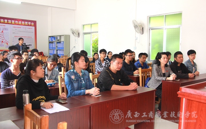 2016年11月12日上午11時30分,我院 “第一書記”馮詩根在會議室做精準扶貧工作報告。出席本次專題報告會的有我院社科部主任劉萬英、社科部6位老師以及思政沙龍的30位學生。本次工作報告會中主要圍繞以下四點內容展開: