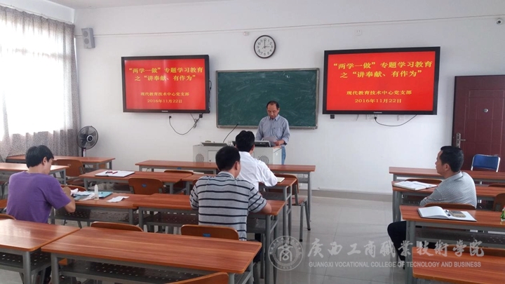 ?????? 2016年11月22日下午,現(xiàn)代教育技術(shù)中心全體黨員在2303教室開(kāi)展了“講奉獻(xiàn)、有作為”即“兩學(xué)一做”專題學(xué)習(xí)活動(dòng)。學(xué)習(xí)活
