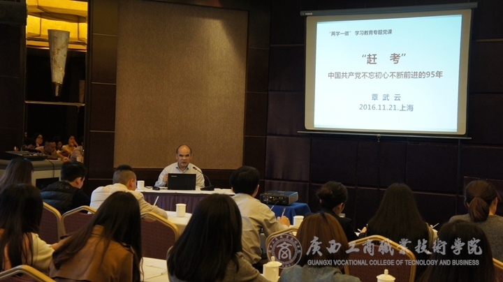 (覃書記為在上海參加頂崗實習(xí)的學(xué)生黨員、入黨積極分子等學(xué)生代表上黨課)
