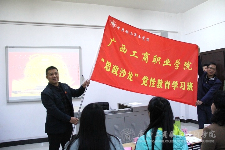 晚上19時(shí),思政沙龍的老師和學(xué)生跟隨帶班老師沈林,來(lái)到了中共韶山市委黨校參加廣西工商職業(yè)技術(shù)學(xué)院韶山黨性教育培訓(xùn)班開班儀式。
