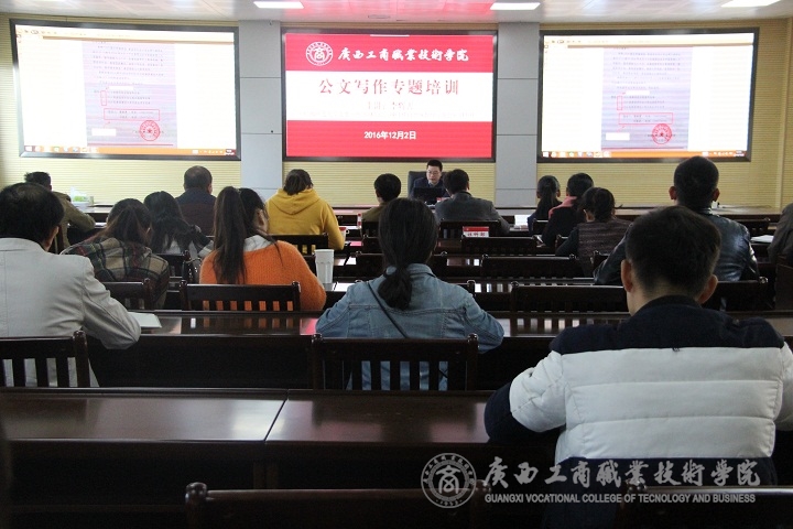 2016年12月2日上午10時(shí),我院在校本部教學(xué)樓2119會(huì)議室召開公文寫作專題培訓(xùn)。廣西師范大學(xué)黨委宣傳部副部長,現(xiàn)掛任自治區(qū)高校工委、教育廳辦公室副主任李輝善老師到我校為我院師生培訓(xùn)。