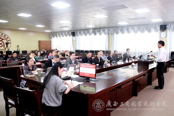 教務(wù)科研處處長(zhǎng)闕勇平匯報(bào)2014級(jí)學(xué)生頂崗實(shí)習(xí)和學(xué)生畢業(yè)綜合實(shí)踐報(bào)告有關(guān)情況,黨委學(xué)工部部長(zhǎng)孫德江匯報(bào)2017屆畢業(yè)生預(yù)就業(yè)、就業(yè)創(chuàng)業(yè)和2014 級(jí)學(xué)生黨建有關(guān)情況。會(huì)計(jì)系主任鄭華、副主任吳明、經(jīng)管系主任譚波、黨支部書(shū)記莫春華、財(cái)信系主任覃遠(yuǎn)霞、黨總支書(shū)記林芳按抽簽順序作相關(guān)工作匯報(bào)。蒙啟成副書(shū)記、李維副院長(zhǎng)分別對(duì)所分管的工作做了發(fā)言。