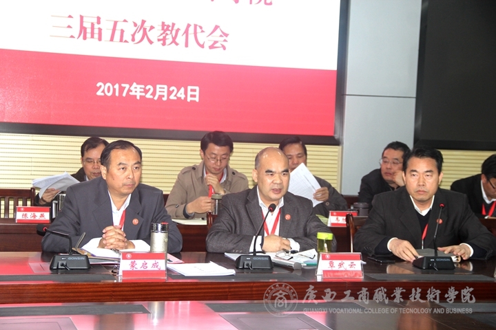 2017年2月24日,我院在校本部報(bào)告廳召開學(xué)院三屆五次教代會,學(xué)院黨委書記覃武云、黨委副書記、院長陳杰及學(xué)院領(lǐng)導(dǎo)班子成員、教代會代表參加了會議,學(xué)校中層干部、離退休代表列席會議,全體教職工列席了第一階段會議。