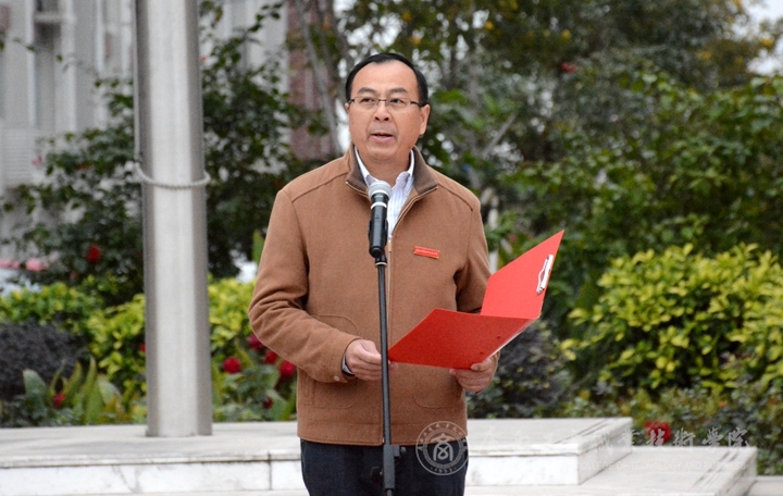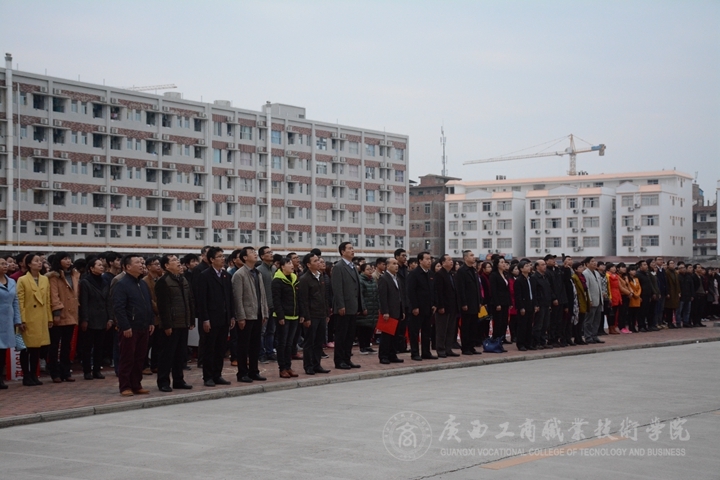 升旗儀式由學(xué)院黨委副書(shū)記、紀(jì)委書(shū)記蒙啟成同志主持,學(xué)院黨委書(shū)記覃武云同志在國(guó)旗下發(fā)表新年開(kāi)學(xué)講話。