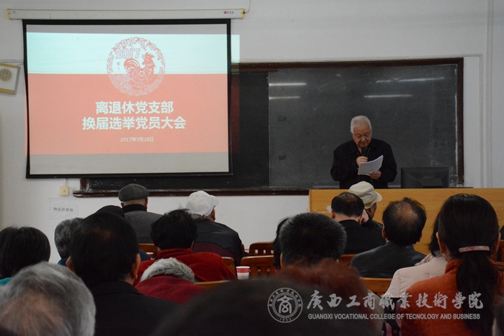 為進(jìn)一步加強(qiáng)學(xué)院離退休黨支部建設(shè),促進(jìn)離退休黨支部黨務(wù)工作順利開展,3月18日上午,離退休黨支部在學(xué)院東校區(qū)2教202教室召開離退休支部“兩學(xué)一做”專題組織生活會(huì)暨換屆選舉黨員大會(huì),會(huì)議組織離退休黨員開展組織生活會(huì),對(duì)全體離退休黨員進(jìn)行民主評(píng)議,并順利開展了支部換屆選舉。離退休黨員共50人出席了大會(huì)。學(xué)院黨委副書記、紀(jì)委書記蒙啟成,黨委組織部部長蔣百平列席了會(huì)議。