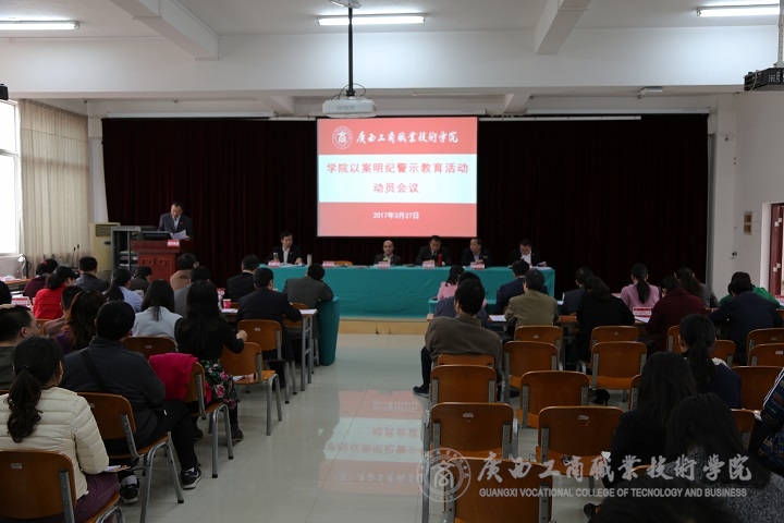根據(jù)《關(guān)于印發(fā)自治區(qū)糧食局開展以案明紀(jì)警示教育活動實(shí)施方案的通知》(桂糧直紀(jì)〔2017〕7 號)精神,我院于 2017 年 3 月 27 日下午,在校本部報(bào)告廳召開學(xué)院以案明紀(jì)警示教育活動動員會議。學(xué)院全體領(lǐng)導(dǎo)班子成員出席會議,學(xué)院黨委委員、紀(jì)委委員;中層干部;各黨總支、直屬黨支部、各系教師黨支部、學(xué)生黨支部書記、副書記及委員參加會議。