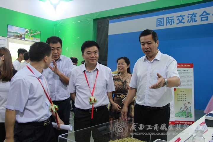 2017年5月7日上午,廣西職業(yè)教育活動周在柳州國際會展中心舉行。李維副院長率我院代表隊伍參加職教展演活動,展示糧油安全快速檢測,并做愛糧、節(jié)糧宣傳。自治區(qū)教育廳副廳長黃雄彪、自治區(qū)人力資源和社會保障廳副廳長黃智宇、柳州市副市長焦耀光等一行參觀我院職教展臺,我院參展團隊熱情接待并介紹了食品檢測安全等特色展示。