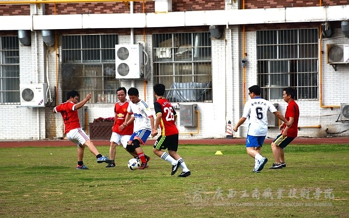 ??????? 在競(jìng)技中鍛煉毅力,在合作中增進(jìn)友誼,在比賽中發(fā)現(xiàn)快樂,在勝利中擁抱幸福。2017年5月7日下午四時(shí),我院職教展足球友誼賽在我院校本部足球場(chǎng)激情開賽,本次兩支比賽隊(duì)伍是我院教職工隊(duì)和校友隊(duì)。