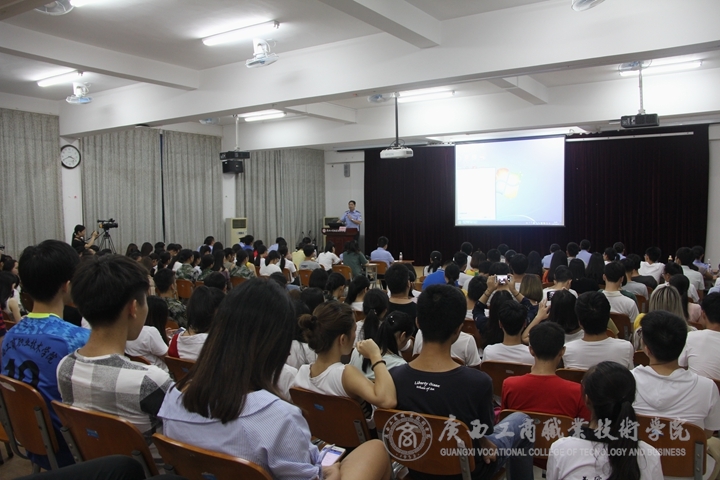 6月份是全國禁毒月,為進一步加強校園禁毒宣傳教育力度,提高師生的禁毒意識,做好毒品預(yù)防教育工作。2017年6月15日晚上,我院邀請廣西第一強制隔離戒毒所的多名警官和一名戒毒學員在校本部教學樓報告廳開展國際禁毒日宣傳講座。