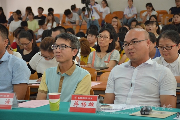 緊接著,各專業(yè)的校友代表上臺發(fā)言,分別是:會計電算化專業(yè)代表陸洲予;電子商務(wù)專業(yè)代表袁開;商務(wù)文秘專業(yè)代表凌錦鳳;計算機(jī)應(yīng)用技術(shù)專業(yè)代表覃昶旭;糧食加工與儲檢專業(yè)代表凌海;飼料與動物營養(yǎng)專業(yè)代表蔣楊雄。他們有些已經(jīng)擔(dān)任某銀行分支行的行長,有些在企事業(yè)單位擔(dān)任了中層管理人員,有些自己成功創(chuàng)業(yè)。
