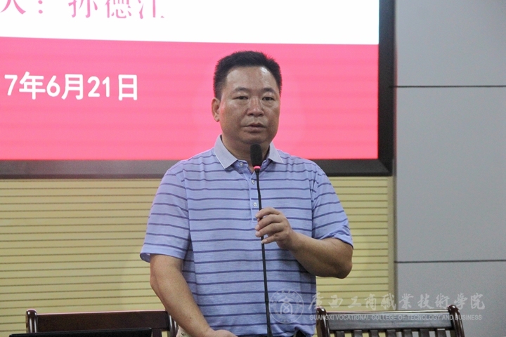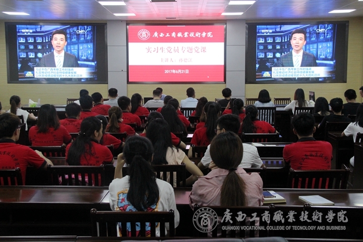 ? ? ? ? 2017年6月21日下午,我院在學(xué)院會(huì)議室開(kāi)展了實(shí)習(xí)生黨員專題黨課活動(dòng)。本次黨課由學(xué)院黨委學(xué)工部部長(zhǎng)孫德江主講,由經(jīng)管系黨總支書記莫春華主持。各系黨支部代表、在南寧實(shí)習(xí)的學(xué)生黨員、學(xué)院15、16級(jí)的入黨積極分子參加了此次黨課。